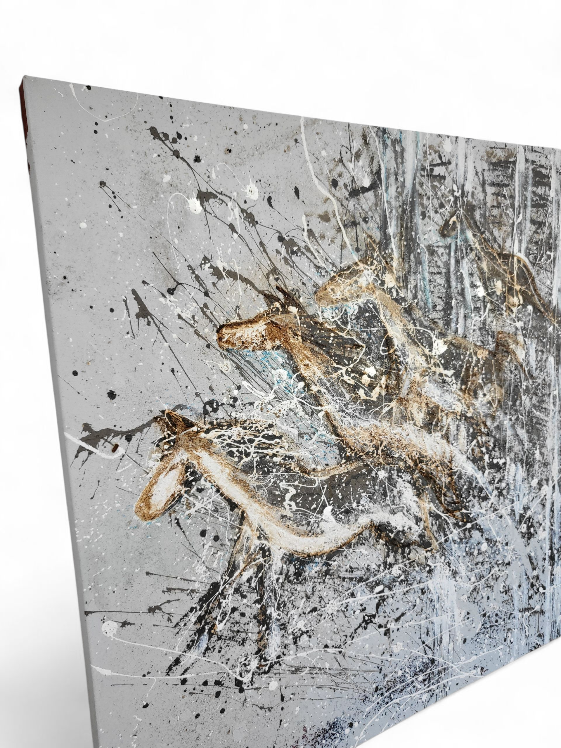 The dynamic composition evokes the natural energy of the landscape, where dust, wind and movement collide - an authentic connection between land and art.