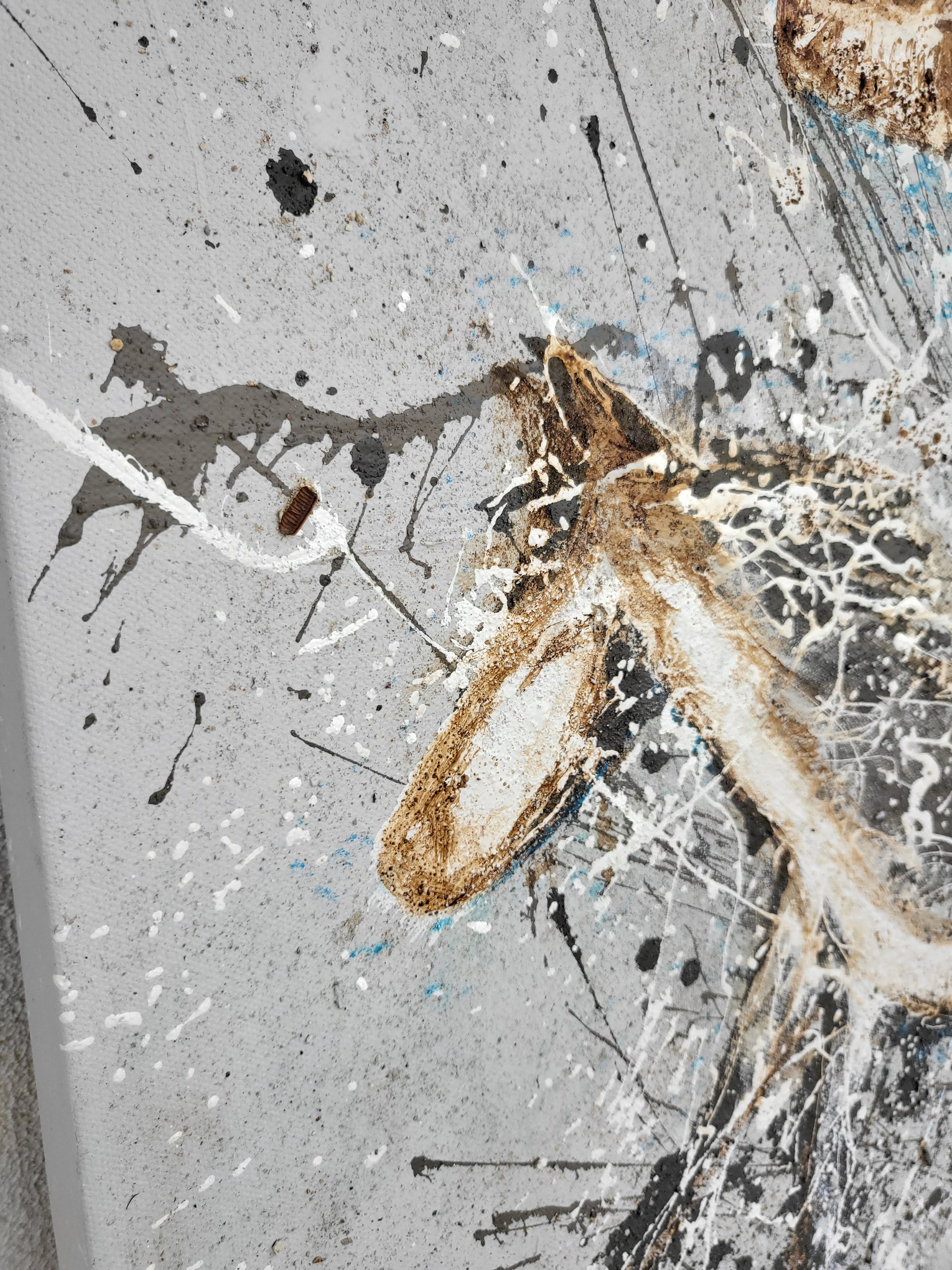 This unique medium gives the work a raw, organic quality - blending earthy tones with expressive motion and layered texture.