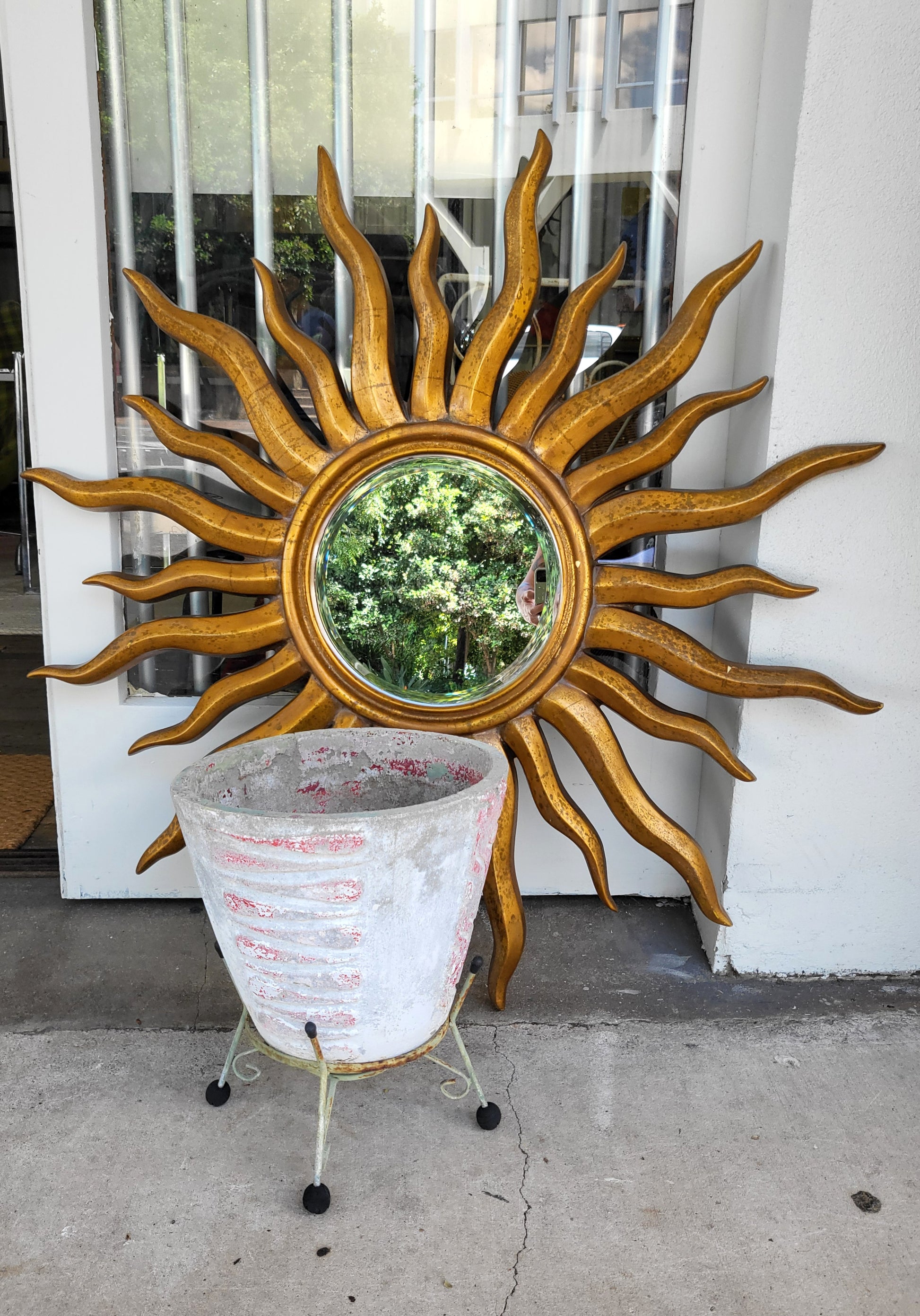 Make a bold statement in your space with this stunning vintage sunburst gilt mirror.