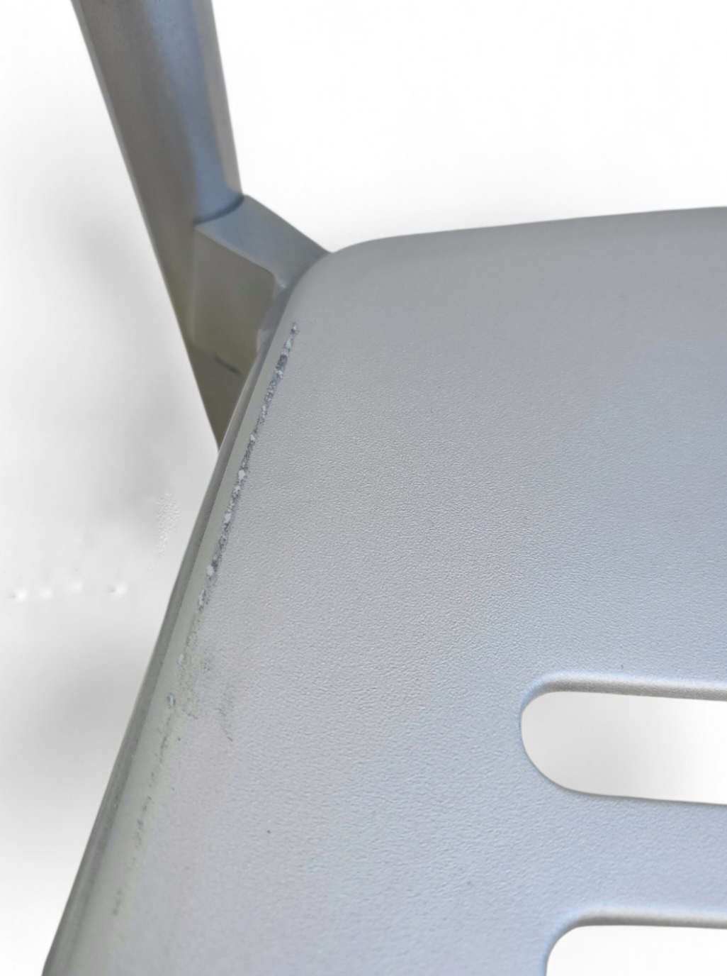 Characterised by their softly curved aluminium frames and perforated backrests, the Mauna-Kea chair was conceived as a lightweight, stackable solution for both interior and exterior use.